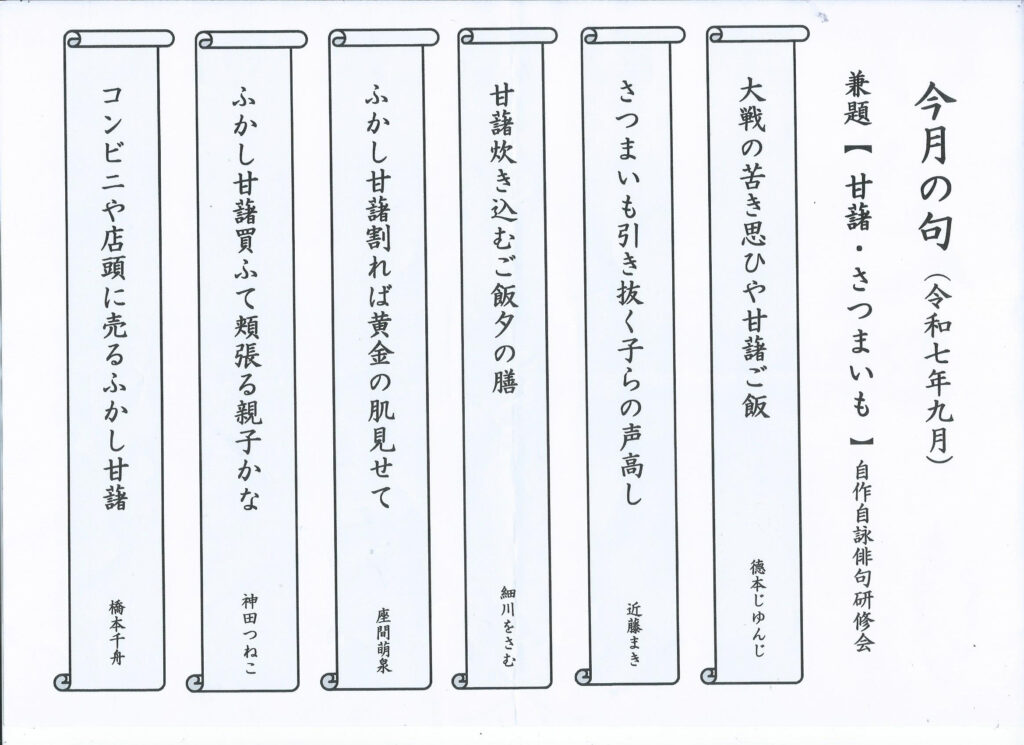 自作自詠俳句研修会 令和7年9月の「今月の選句」を掲載しました。