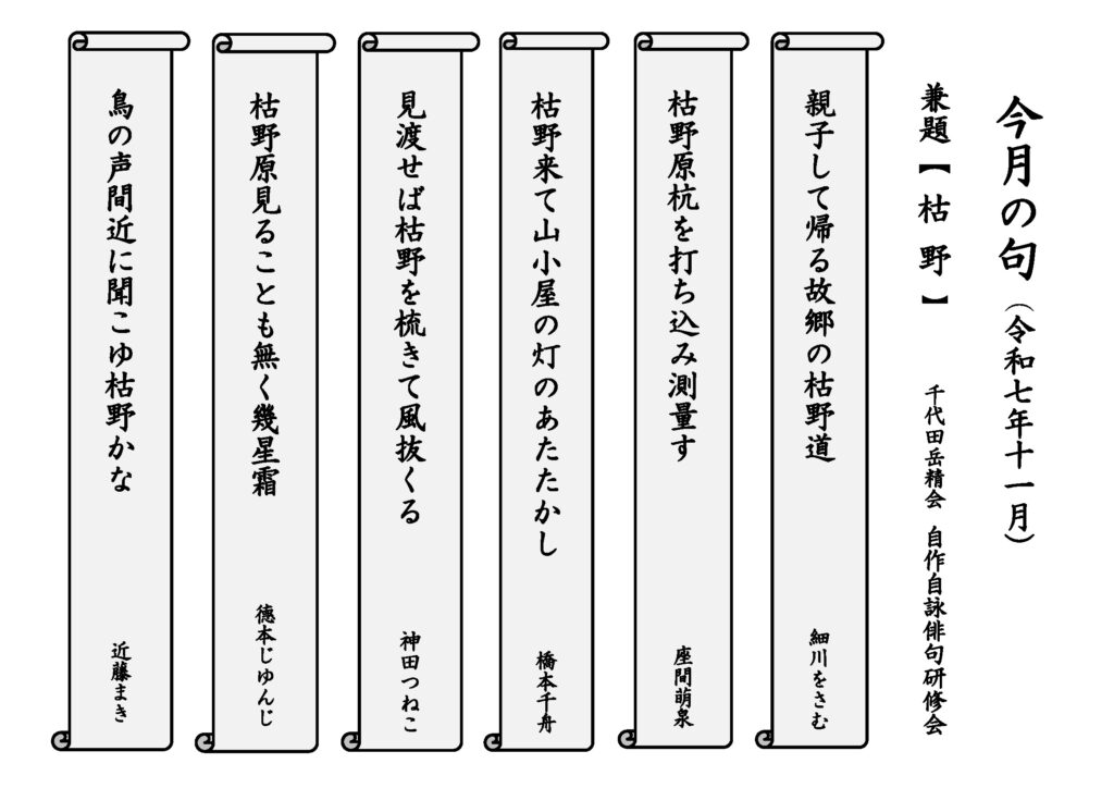 自作自詠俳句研修会 令和7年11月の「今月の選句」を掲載しました。